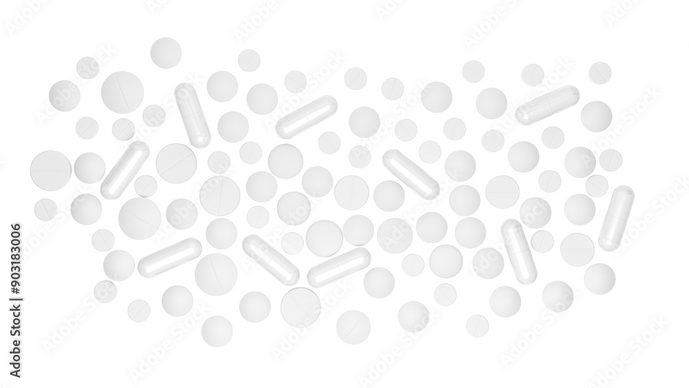 White pills. Isolated.. 3d illustration.
