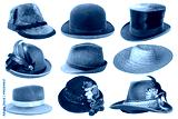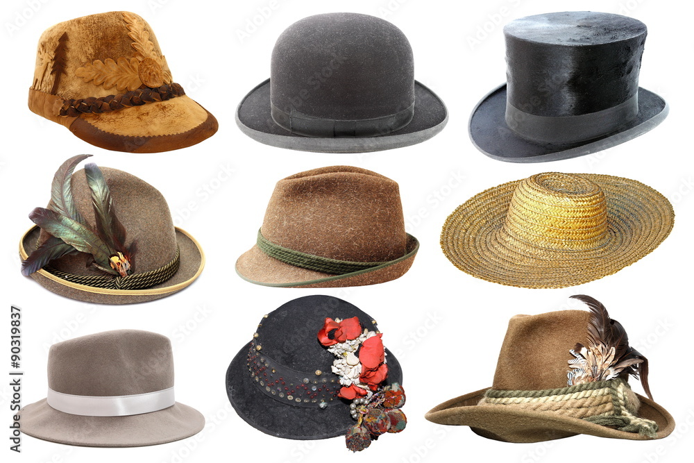 collage with different hats over white