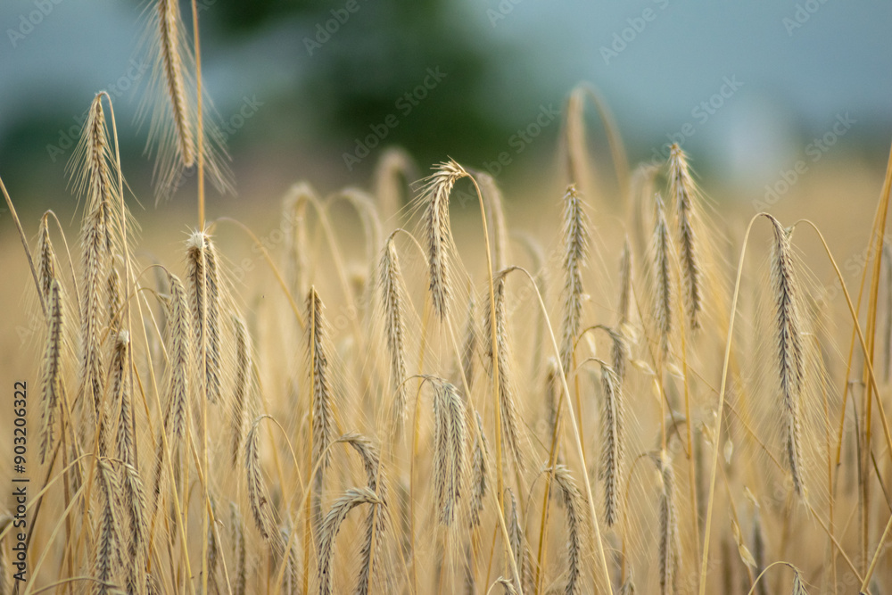 Yellow wheat ears ready for harvest in an agricultural field