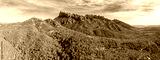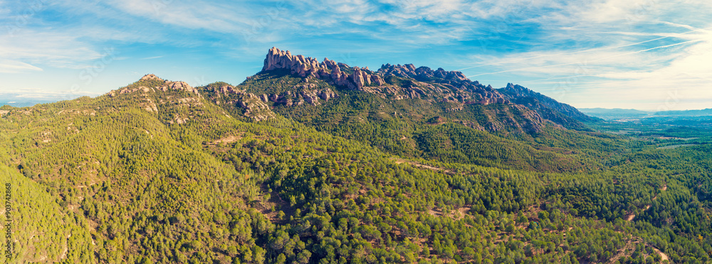 Mountain landscape in the morning. View of Montserrat mountain near Barcelona city. Spain. Horizontal banner