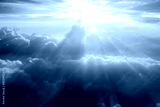 Sunset, sunrise on clouds, light rays effect