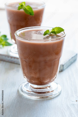 Homemade chocolate egg cream with milk, soda water and chocolate