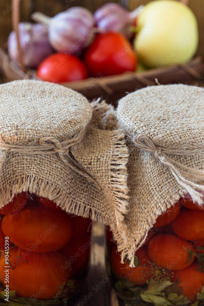 Homemade tomatoes preserves in glass jar