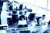Casually dressed workers in a busy open plan office