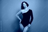 Photo of provocative sexual lady wear off shoulder black body suit empty space isolated beige color background