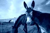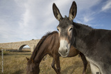 Portrait of a mule against blue sky