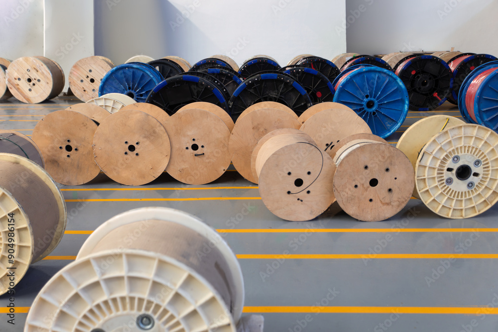 car electric harnesses factory ,rolls of cable wire, stored in a warehouse