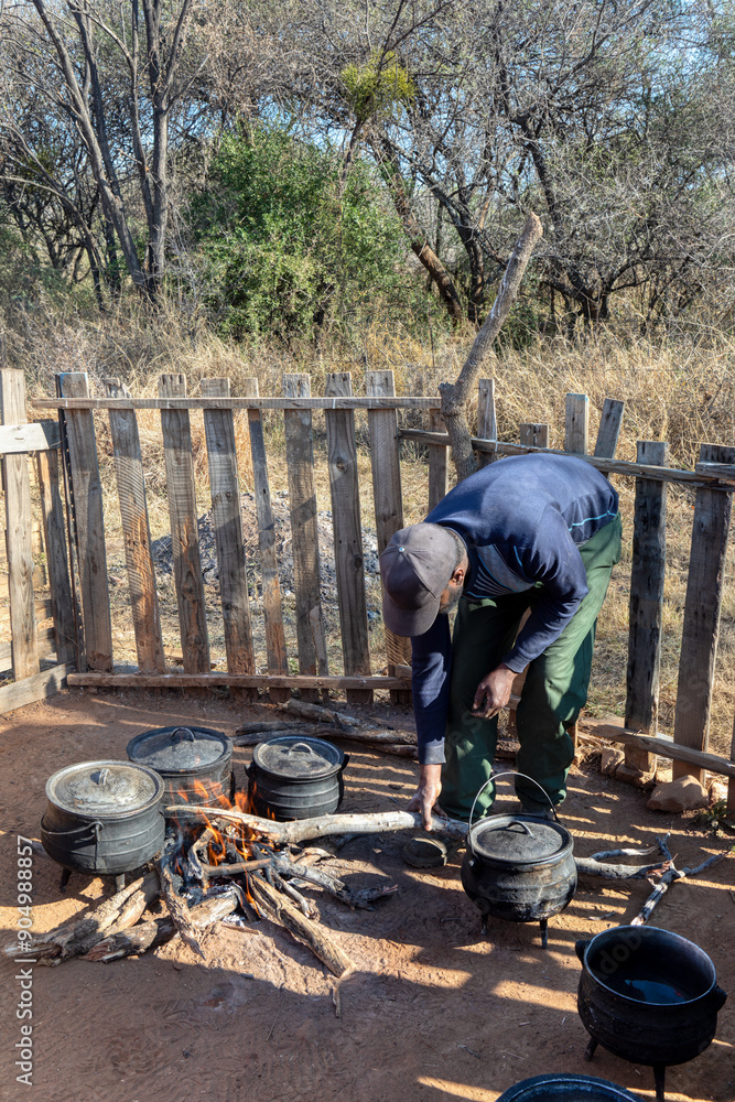 african street vendor on outdoors kitchen cooking traditional food in cauldron by the side of the road
