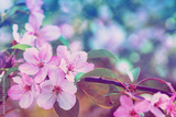 Cherry blossom branches in pastel colors at sunset. Color gradient