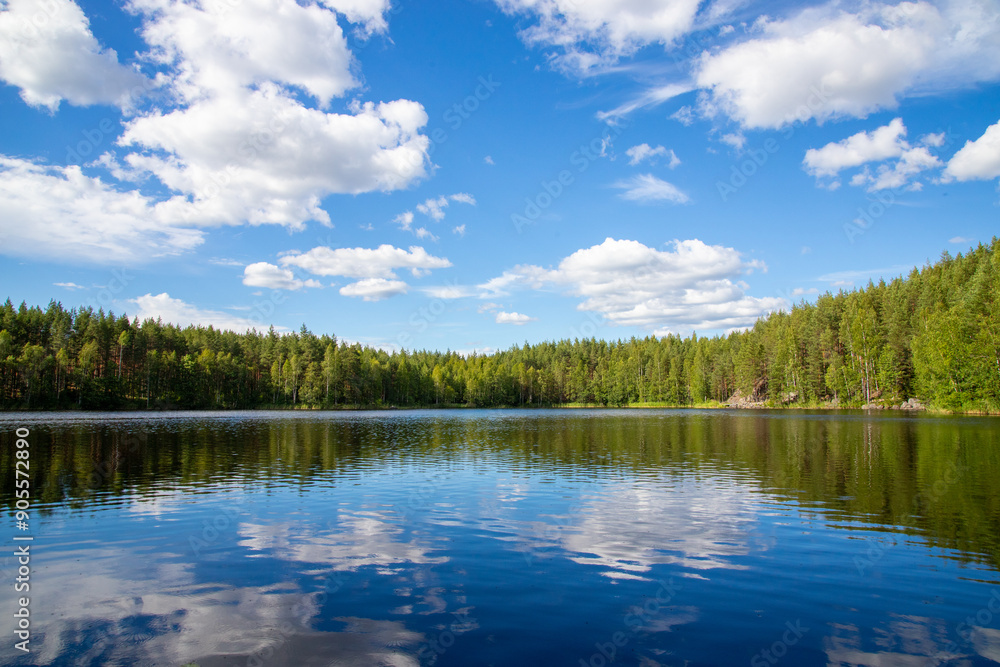 beautiful lace scenery in finland. green trees and blue skies.