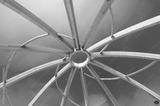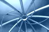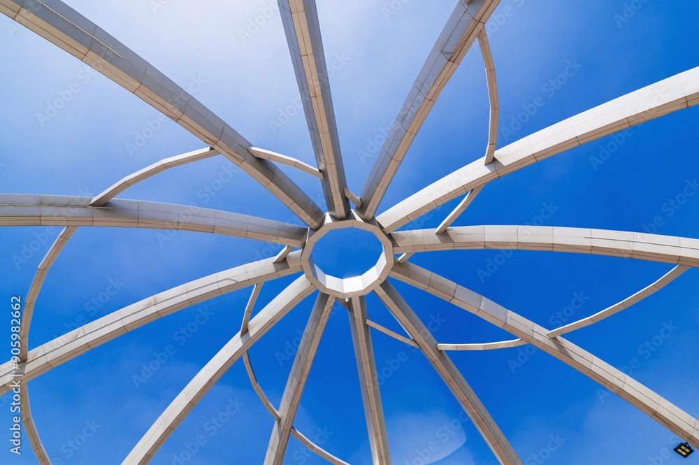 Metal construction of an art object on background of blue sky background. Amphitheater in Navruz Park in Tashkent, Uzbekistan