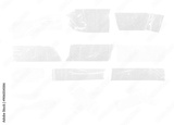 set of Transparent Tape duct tape crumpled stripes. Realistic sticky paper strips. Isolated plaster masking pieces with torn edges, ripped wrinkled bands for package wrap