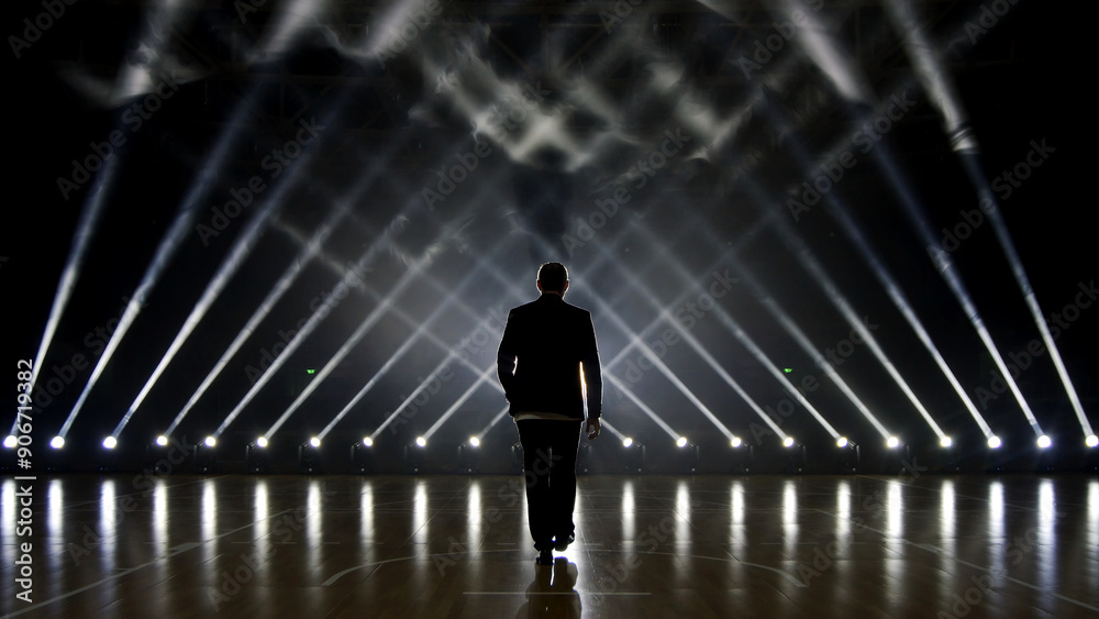 Silhouette of a man in classic suit against a backlight. A sophisticated and elegant image ideal for highlighting professionalism, formal events, and stylish fashion.