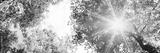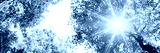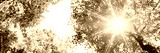 Warm rays of sunlight breaking through tree crowns in spring - banner