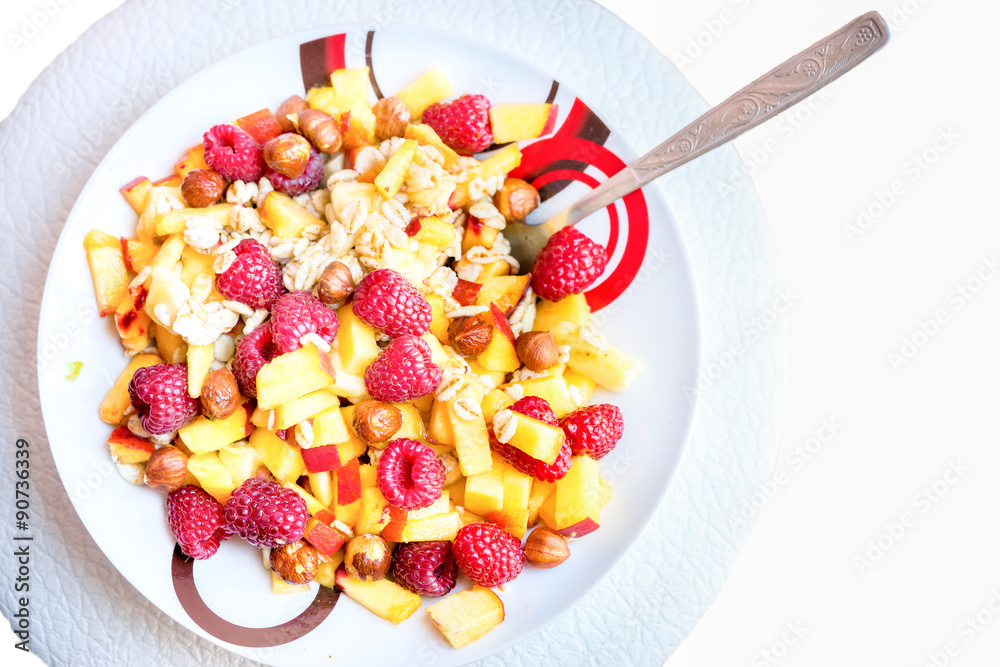 Oatmeal porridge with Berries for Breakfast in a plate, isolated on white background. with copy space for your text