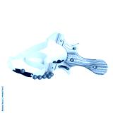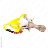 Modern slingshot or catapalt made by metal with mud ball for shooting.
