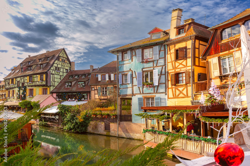 Alsatian half-timbered houses in little Venice, old town of Colmar at Christmas time, Alsace, France