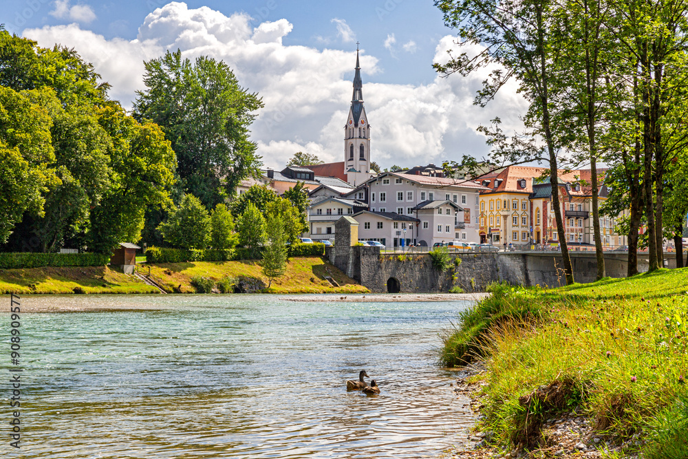 Amazing Summer View at Issar River with Ducks and Bad Tolz, Germany