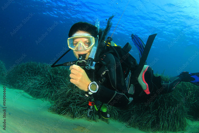 Beautiful woman scuba diving