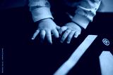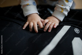 Small toddler baby arms working a zipper close up while wearing a pajamas
