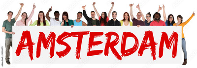 Amsterdam Schild Multikulturell Gruppe lachen junge Leute Mensch