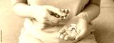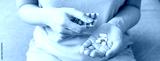 Sick ill asian young woman, girl hand taking tablet pill capsule out from blister pack, painkiller medicine from stomach pain, head ache, pain for treatment, take drug or vitamin at home, health care.