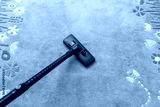 Vacuum cleaner cleans carpet, with copy space for text message, advertising - Spring Cleaning Concept