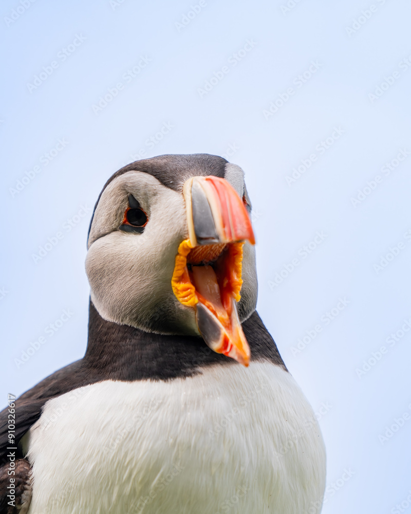 Atlantic puffin (Fratercula arctica) in Hornøya, uninhabited island in Vardø Municipality in Finnmark county, Norway