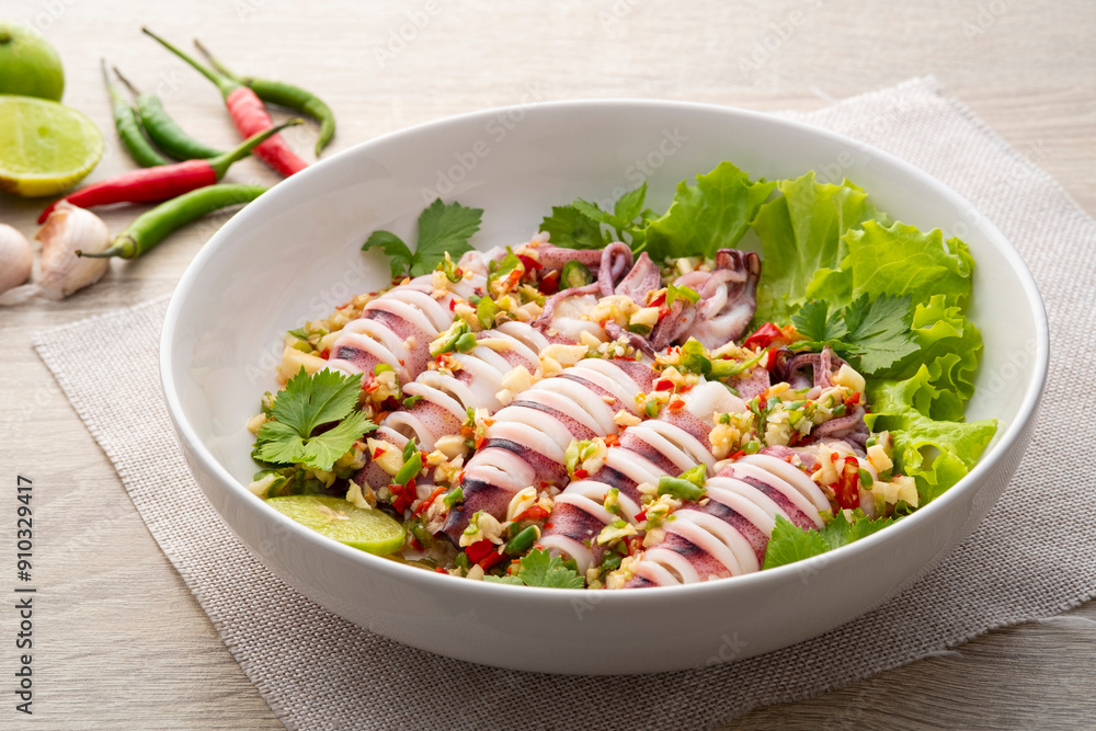 Steam Squid with Spicy Chili and Lemon Sauce (Pla Muk Nung Manow)