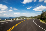 Winding road in Adirondack mountains, upstate New York, USA. Transportation, travel, explore, vacation, summer, destination, driving and nature concept
