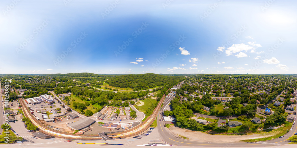 Hawthorne New York, USA. Aerial equirectangular drone 360 vr photo