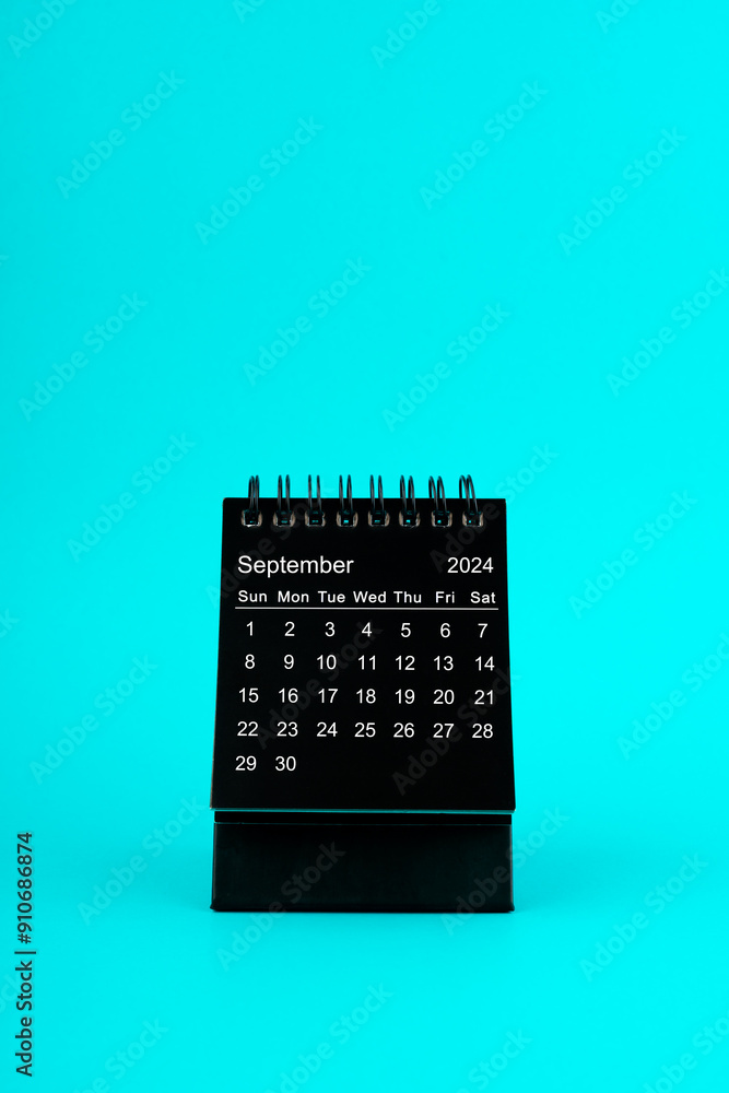 Black Calendar for September 2024. Desktop calendar on a green background.