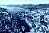 Zurich, Switzerland: Stunning aerial view of Zurich old town and downtown along the Limmat river and lake Zurich in Switzerland largest city