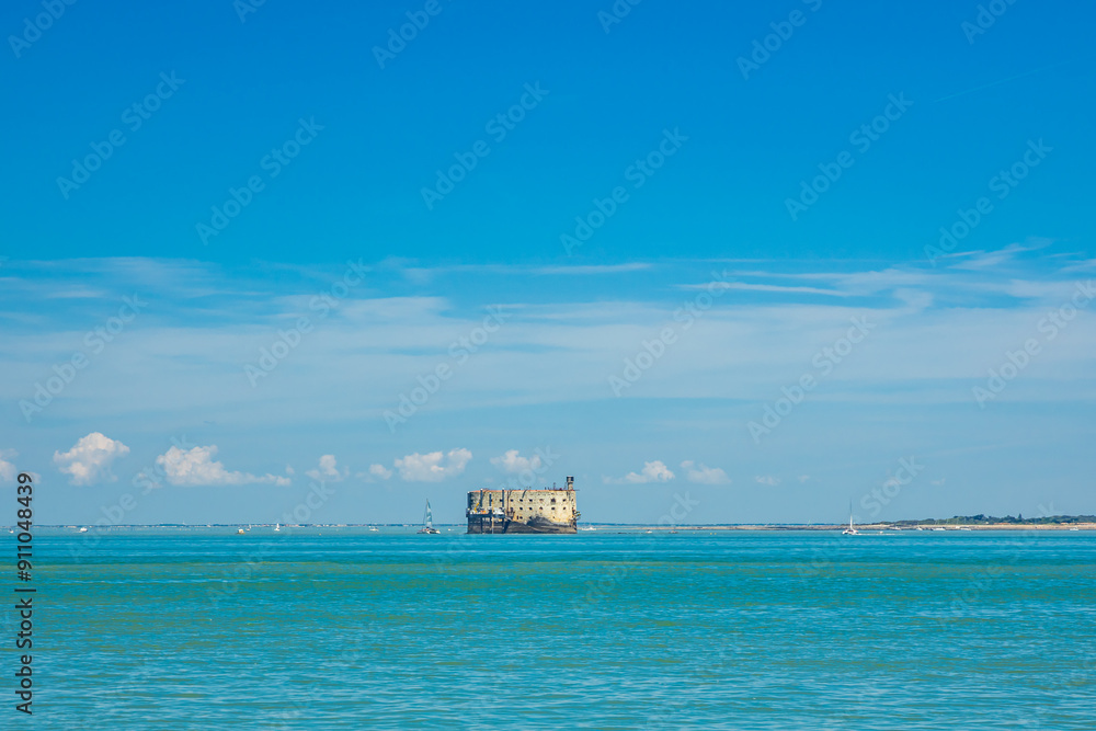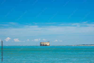 Fort boyard seen from Boyardville beach on a sunny day in Charente-Maritime, France