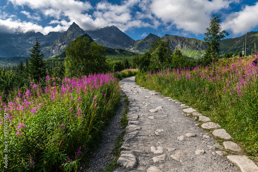 Hala Gasienicowa in Summer with Tatra Mountains and Flowers