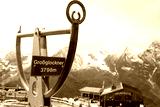 Sign at Edelweiss Spitze Peak, the highest point on the Grossglockner High Alpine Road at Grossglockner, Austria. It's pointing at the peak of Grossglockner