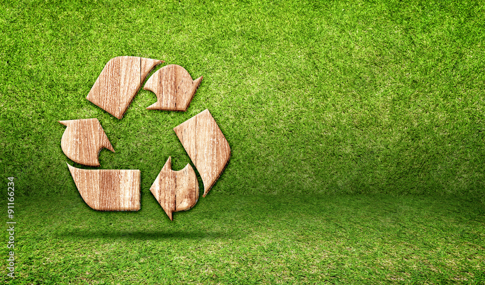 Recycle wood icon inside in grass room,Eco concept