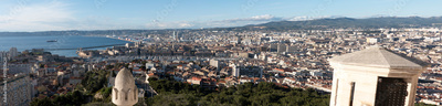 A breathtaking panorama of Marseille, France, unfolds from the vantage point of the Basilica of Notre Dame de la Garde.