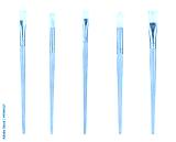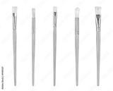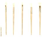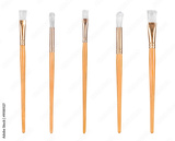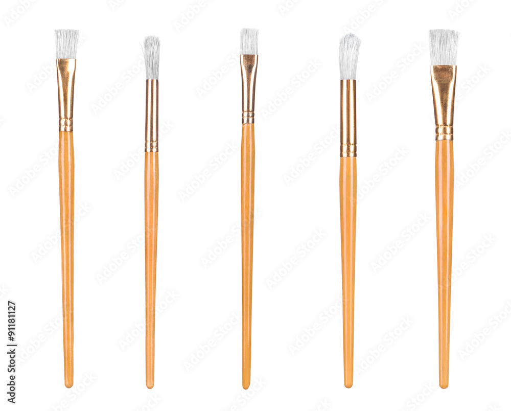 close up of paint brushes on white background
