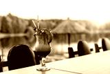 Beautiful cocktail on beach at sunset, travel and tourism concept