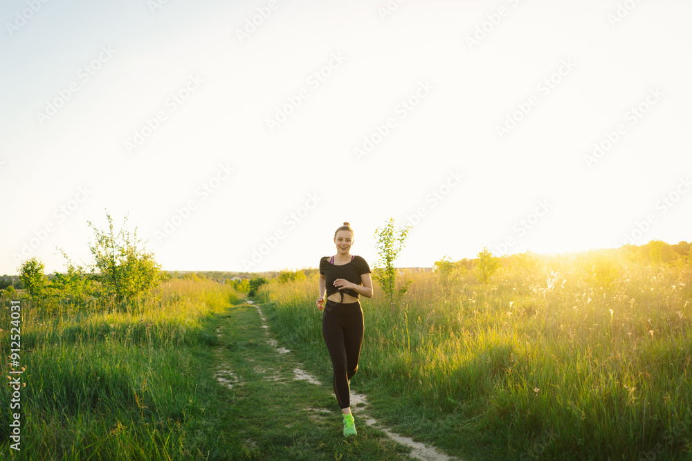 Beautiful girl doing fitness or yoga in nature on a sunny summer sunset.