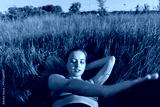 Beautiful girl doing fitness or yoga in nature on a sunny summer sunset.