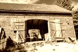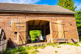 Exterior view of rustic old farm house barn on sunny summer day, Milecice village, Lower Silesia, Poland