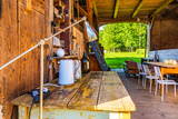 Interior view of rustic old farm house barn on sunny summer day, Milecice village, Lower Silesia, Poland