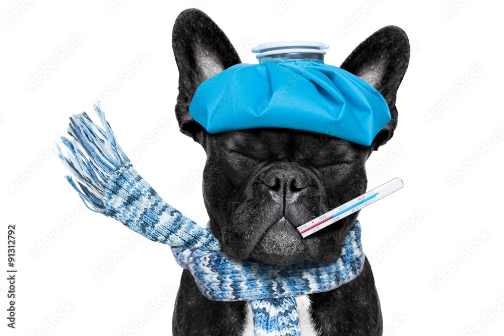 Sick ,ill dog with fever