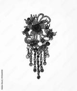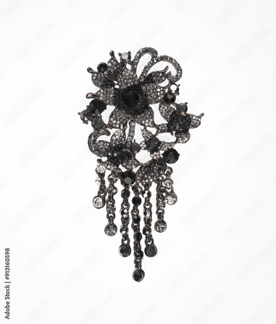 jewelry silver brooch with black stones isolated on white background