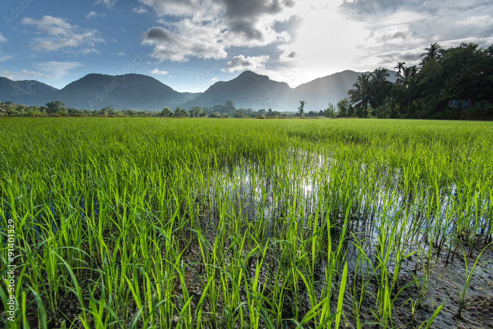 beautiful paddy field in the morning in Sri Lanka