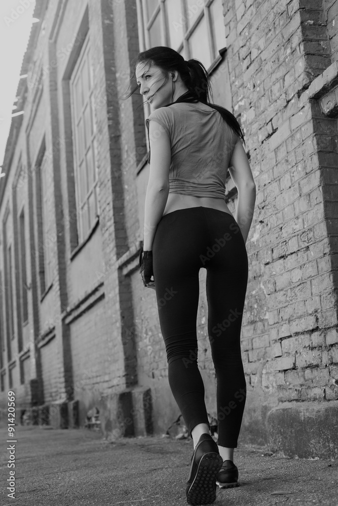 Fitness sport girl resting after intensive evening run, young at