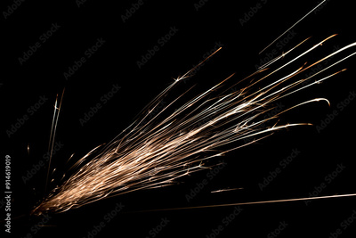 sparks from the grinder glowing in the dark