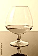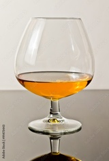 snifter of brandy in elegant typical cognac glass on white light background